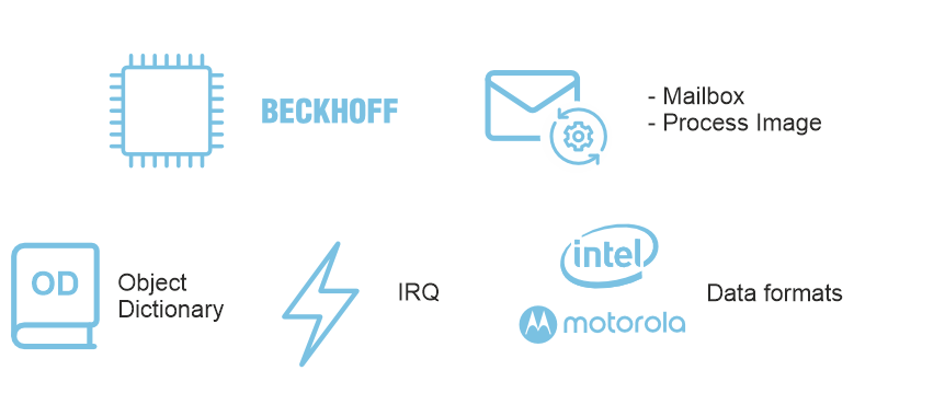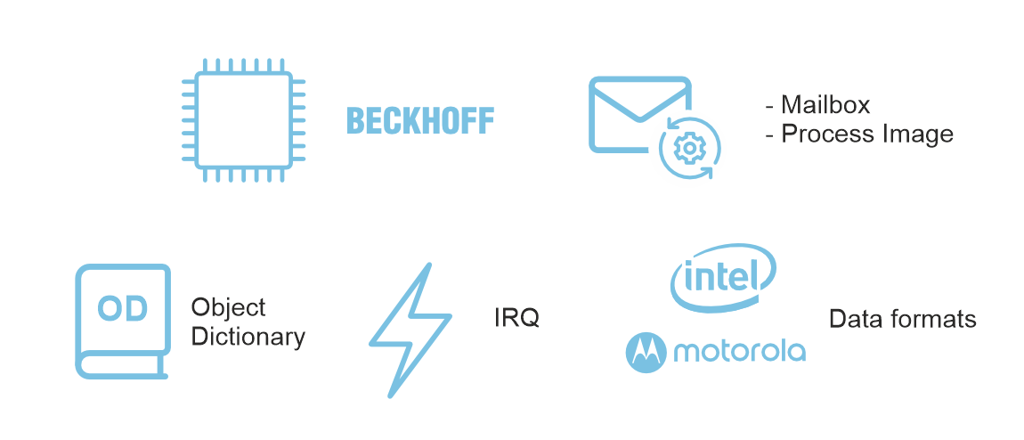 - Compatible with any Beckhoff EtherCAT Slave Controllers (ESC):