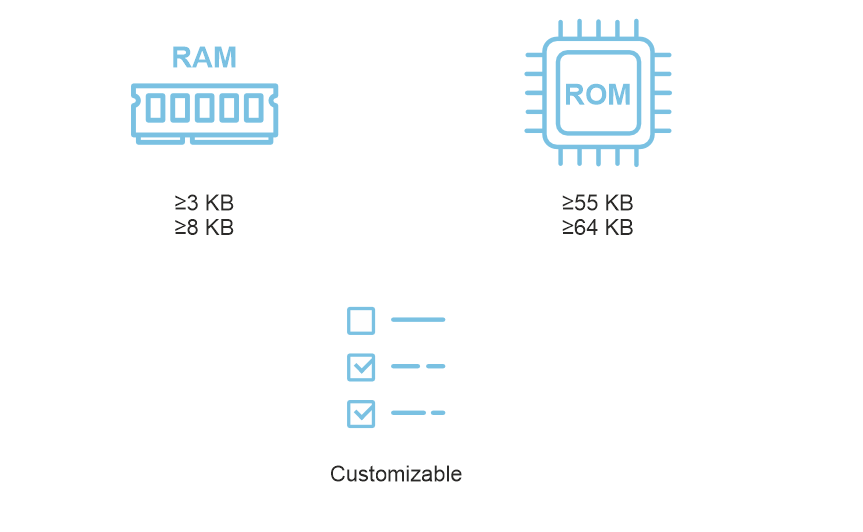 The amount of RAM used depends on the application design and the size of the Object Dictionary (OD). For example, in case of a static OD usage (a build based on source code):
