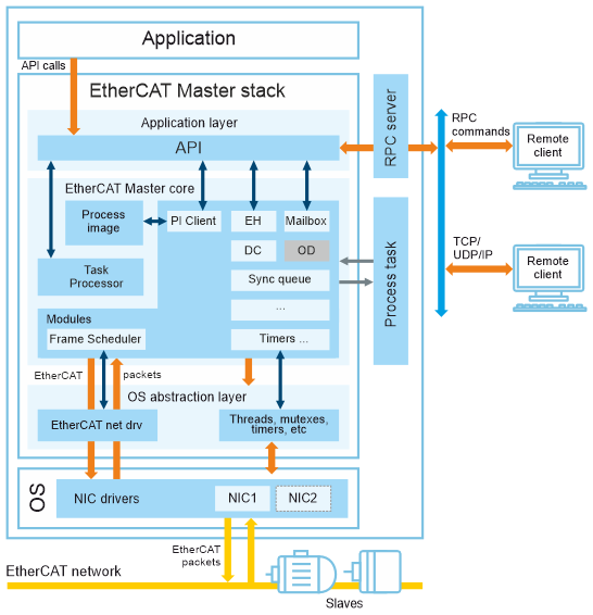 KPA EtherCAT Master stack 採用事件驅動架構,所有程序都會根據特定事件啟動和執行。主站內的每個模組都配備了各種事件,可供主站本身和控制應用程式使用。這些事件在同步執行任務,以及通知系統週期性事件、狀態更新或緊急狀況方面扮演重要角色。透過在使用者應用層級存取所有的 Master 事件,KPA EtherCAT Master stack 可實現事件驅動的執行模式,進而提升整體系統的反應能力與效率。